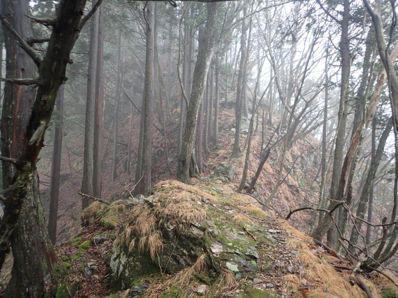 ボルダリングができそうな大きな岩で一休みして、そこからさらに登ると台高らしいやせ尾根となってきました。