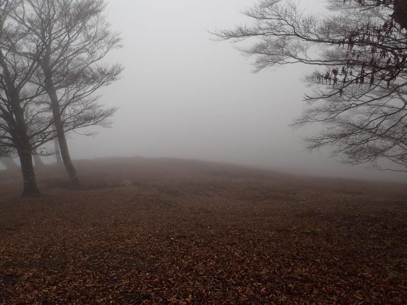 明神平は、広い地形のため、この日のようにガスがあると方向を見失いやすい。