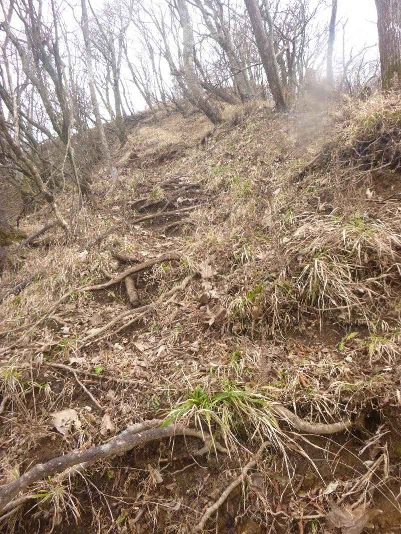 ○三ノ塔より先、ヨモギ平方面は標識の無いマイナールートです。踏み跡はありますが地図とコンパス、それにGPSもあると良いと思います。