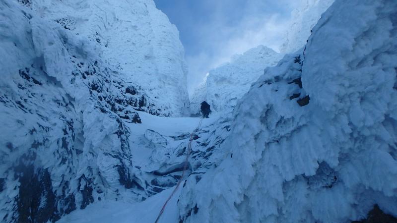 二日目は前日からの晴天となりましたが、滅茶苦茶寒く、おまけに強風!中央クーロアールもなかなかシビアで楽しい登攀が出来ました。しばらく山に行けてなかったので体力が落ちてましたが、年内最後の山行は両日ともに充実したものとなりました。