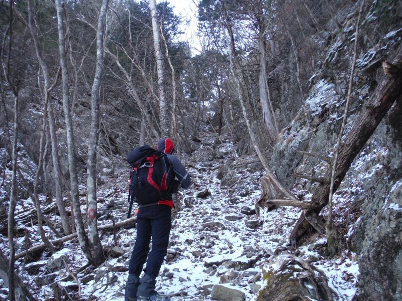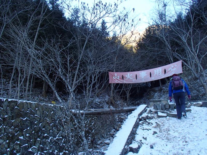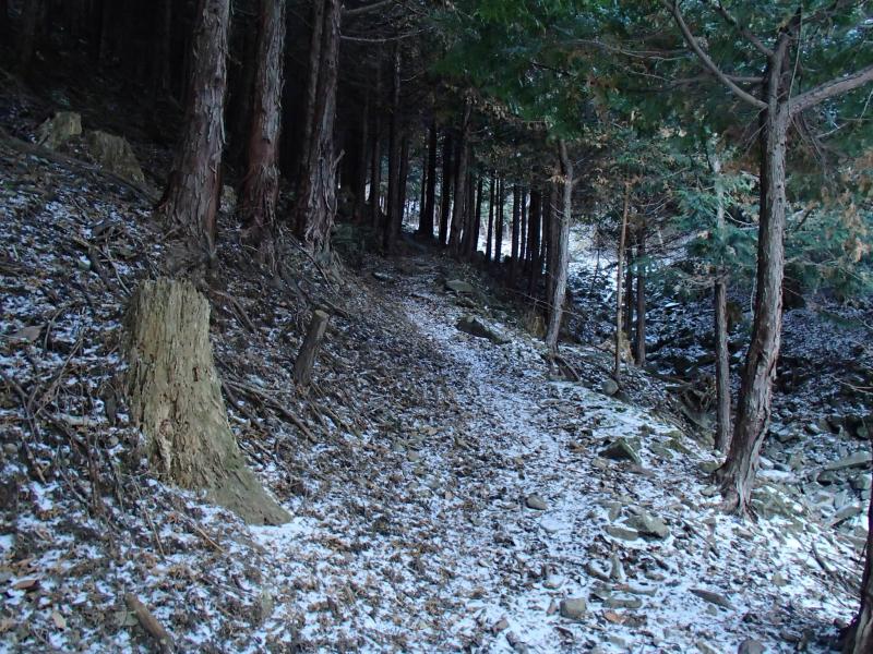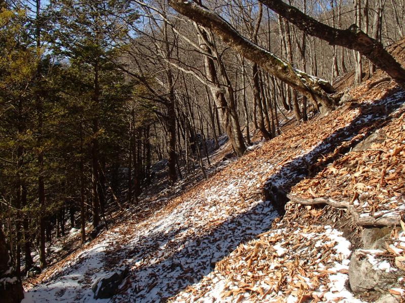 赤岩岳へ向かう道は全て北側に面している為、この時期は相当な寒さでした。