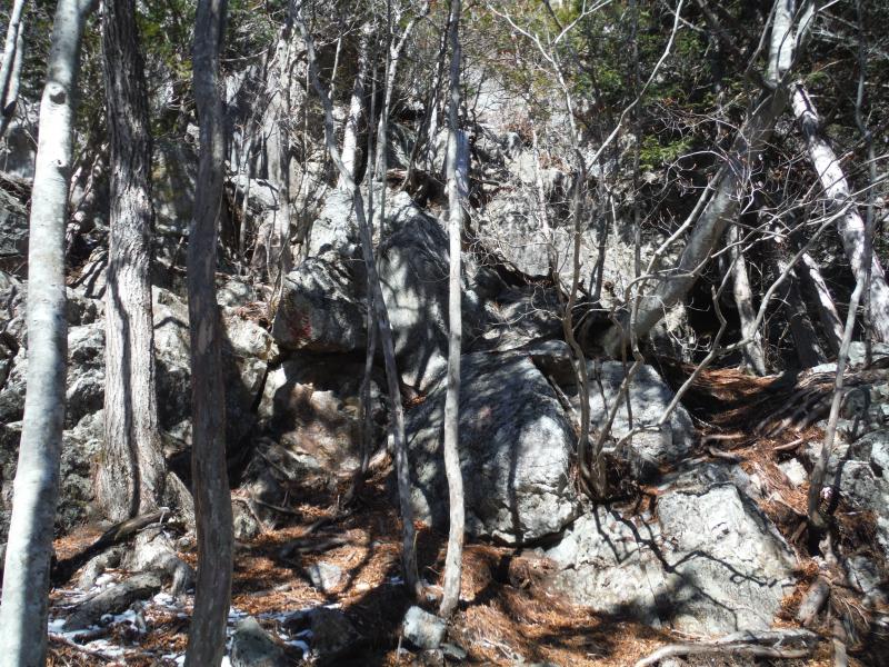 分岐の後、鞍部を超えてしばらく行くと、大ナゲシの取付きにたどり着きます。