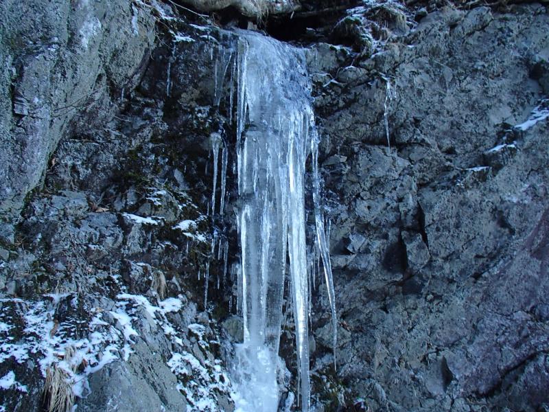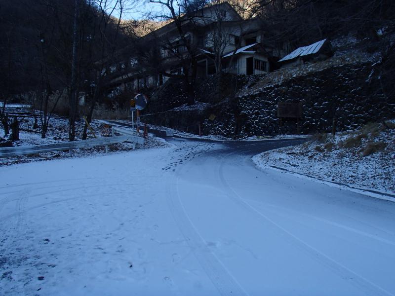 現地近くになると、路面には薄雪、トンネルにはツララを確認。