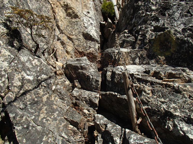 鎖の取り付けられた岩場は、展望が最高に良く、高度感もあってスリリングです。