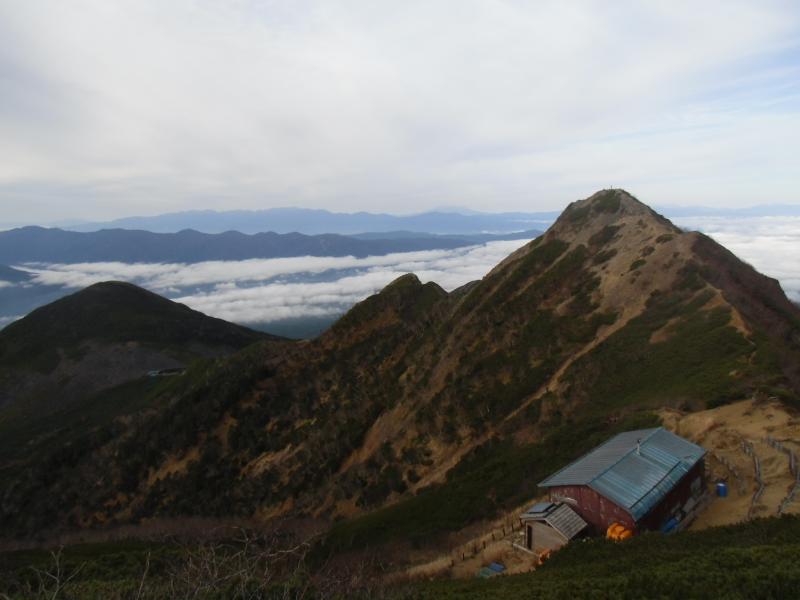 キレット小屋で雲海に浮かぶ富士山をのんびり眺めて出発。