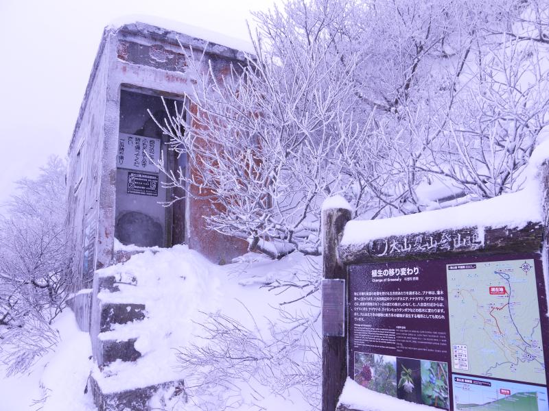 冬です、雪です、大山の様子を見ておきたくて出かけました。もちろん登山口から白銀の世界なのですが、登山道はそれとはっきり分かる階段が確認できます。この階段が隠れる積雪だと歩きやすいのですが、今はかえって歩きにくい(疲れる)と感じました。