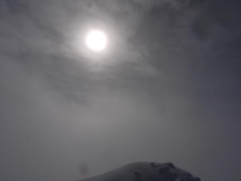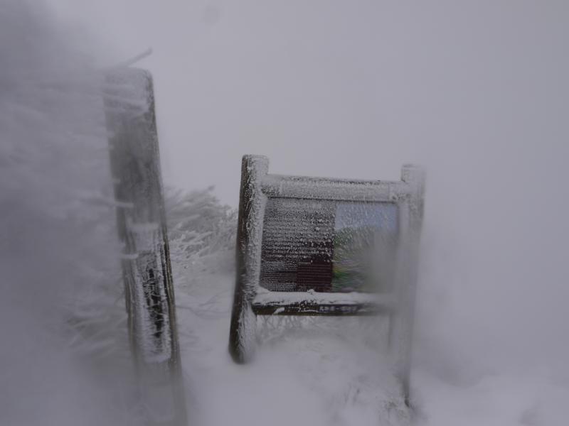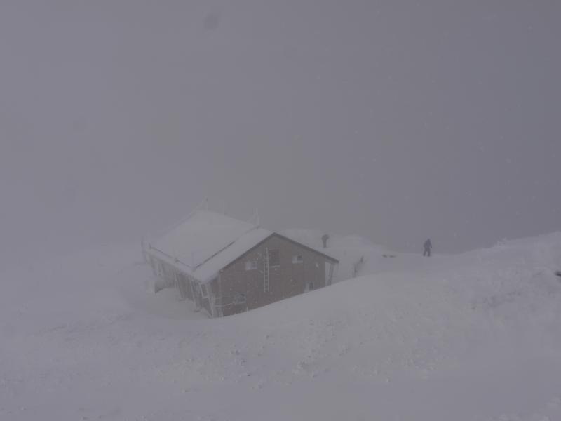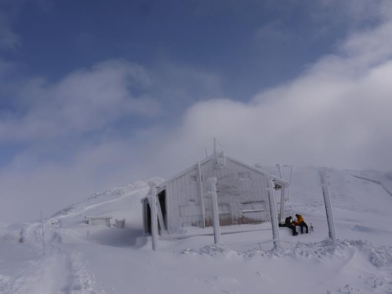 この日はほとんど曇っていましたが、幸い風は無く頂上避難小屋で食事を摂っていると一瞬日射しがあり急いで頂上に向かい写真を撮りました。