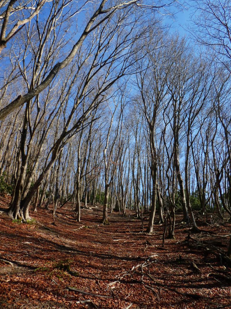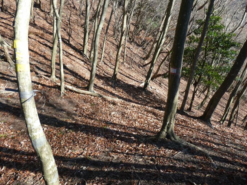 斜面は急な所も多く尾根の分岐等で分かりにくい箇所もあります。