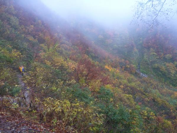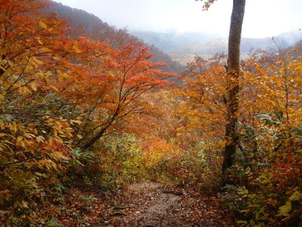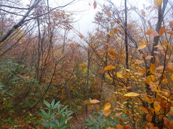 昨日からずっと雨が降っており、登山口に着いてから頂上に行くまで終始雨が降っていました。紅葉は見頃を迎えておりとてもきれいでした。雨がしとしと降っていたのが残念でしたが、紅葉を見る事には支障がない程度でした。ただ展望は曇ってて全然見えませんでした。また来年も来たいと思います。