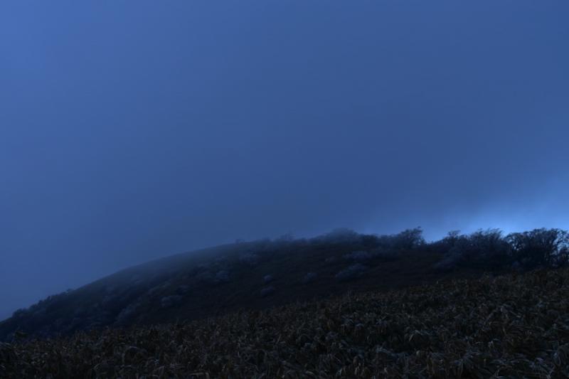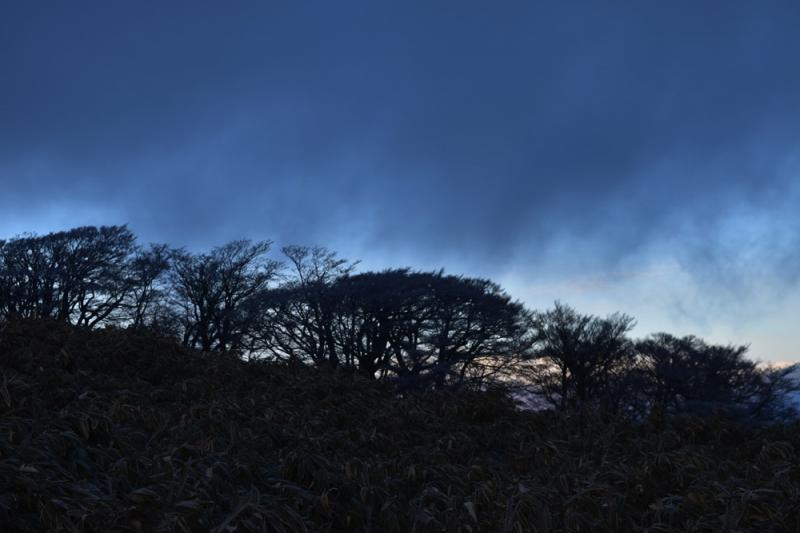 本来なら山頂でツェルトに入ってダイヤモンド富士を待つ予定でしたが、あいにく富士山も見えず風も強く小雪も降ってきましたので早々と下山しました。