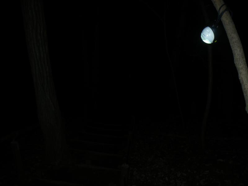 ④東谷山散策路はほぼ階段で、数箇所にランプがあるものの、ヘッドランプは必要