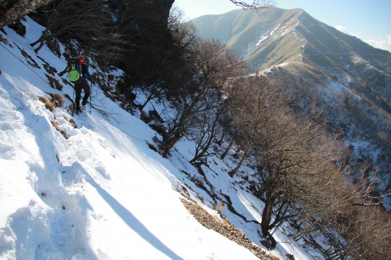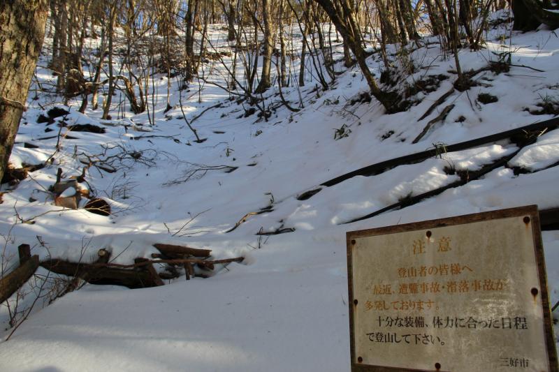 今回は春くらいの積雪量だったので、次郎笈のトラバース道も大丈夫でした。大剣神社の下の道は通行止めになっています。