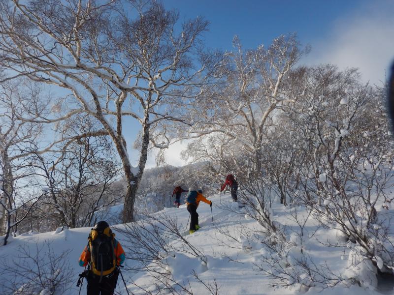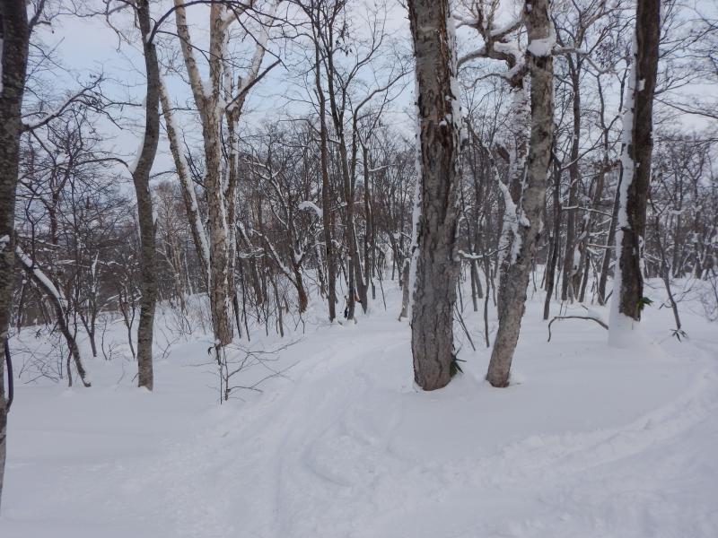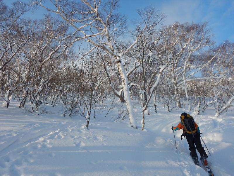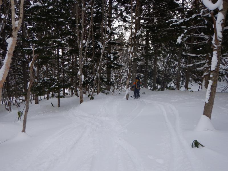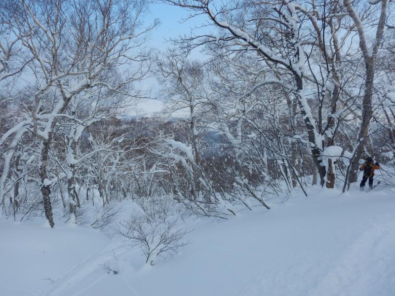 今回はピークハントではなくBCを楽しむ目的でしたので、雪質が変わってきたあたりで