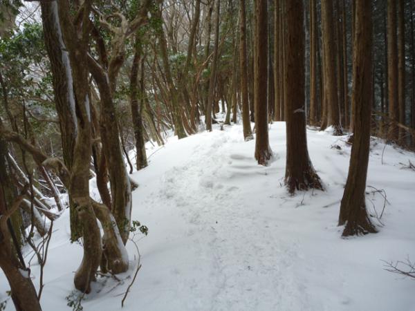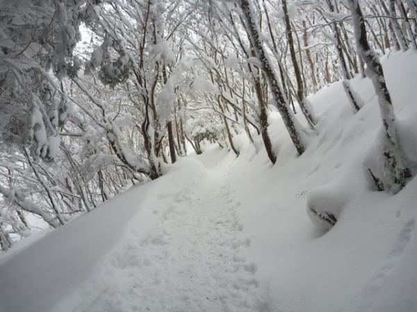 登山道は雪が積もっているとはいえ、しっかりとした足跡が付いていたので迷わず歩けました。