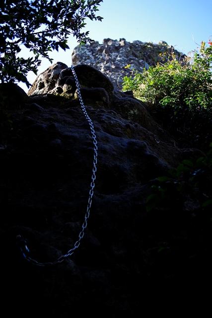 山頂へは約30Mを鎖を伝いながら登り、また下ります。