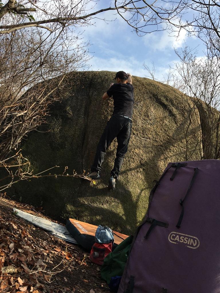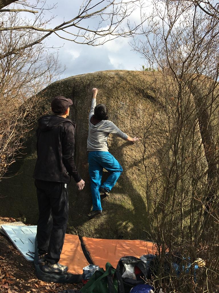 11時くらいまでは降ったりやんだりで、これはムリかと思ってましたが岩の様子だけでも見に行こうとエリアを回ってみると、賑やかに登ってる人たちがいる!