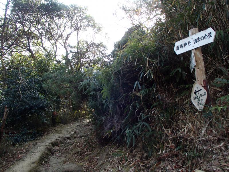 - 鹿嶋神社前駐車場>5分>鹿嶋神社>22分>展望台>12分>鷹ノ巣山>40分>馬の背分岐>50分>高御位山山頂>25分>成井高御位神社>65分>鹿嶋神社前駐車場