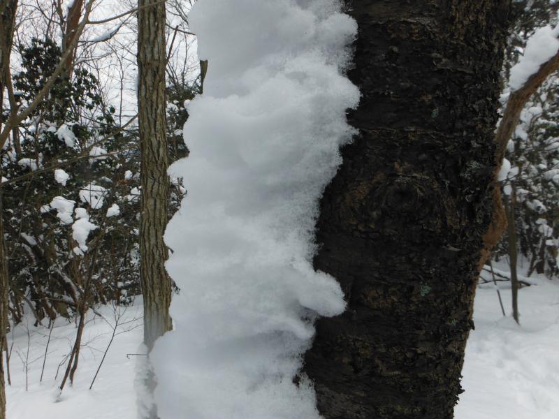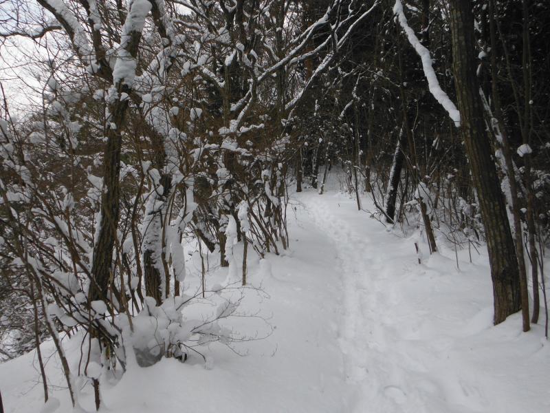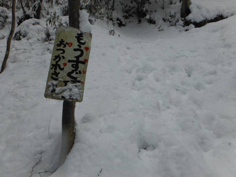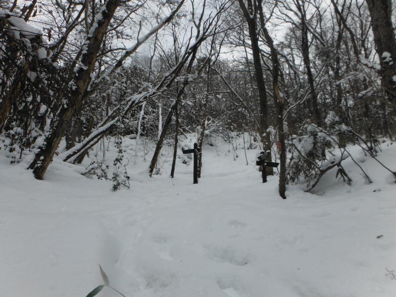 分岐までも徐々に雪が増え、めったに見られない雪景色を楽しめましたが、分岐から山頂までは、スノーシューで歩くととても楽しく、今回は登った甲斐がありました。
