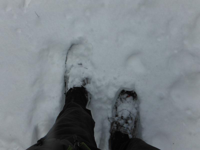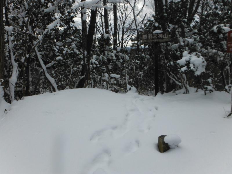 雪は予想よりもはるかに多く、天満神社分岐から山頂に向かう道はスノーシューがなければ軽く30㎝は埋まる状態で、持参したMSRライトニングアッセントでサクサク歩いてきました。
