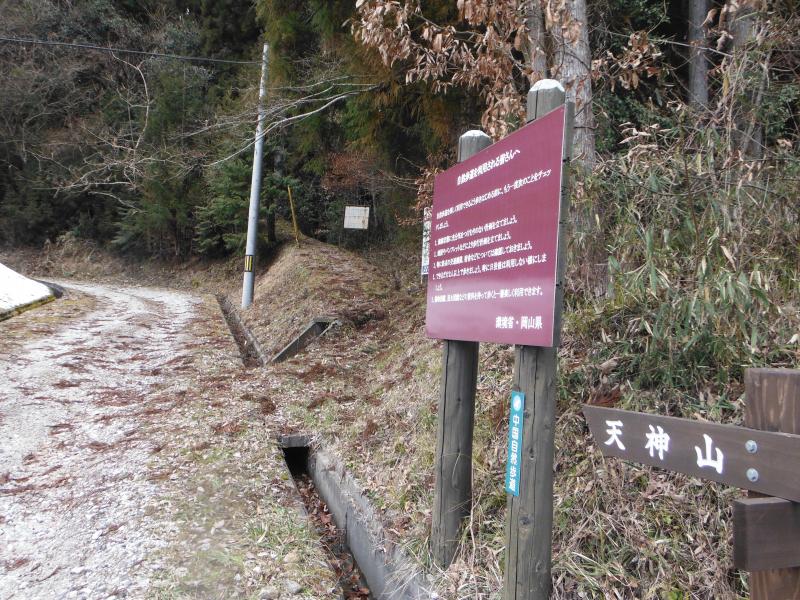 先に同じ高梁市の弥高山に登り、ある程度雪が降ったのを確認したので、もう少し北部にあり、標高も高い天神山ならもっと雪を見られるかと考え登ってきました。