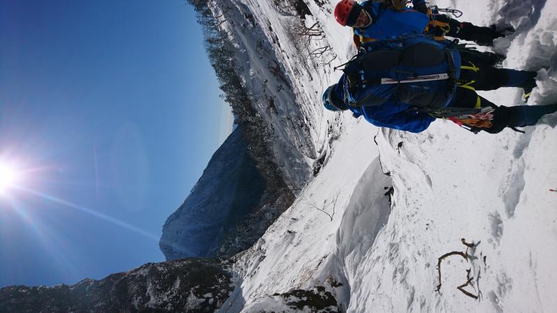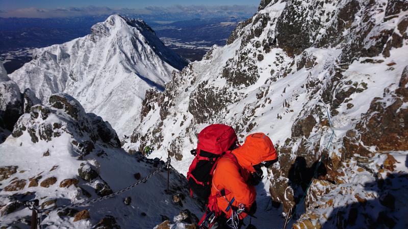 赤岳~地蔵尾根~赤岳鉱泉 12本アイゼン&ピッケル必須。かなりの急坂。危険個所は無理せず後ろ向きに降りたほうが無難です。