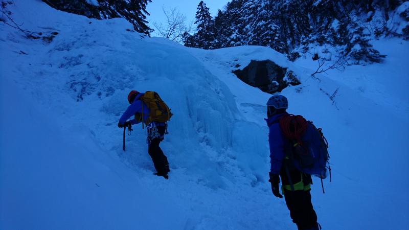 26日 ジョウゴ沢へアイスクライミングへ!赤岳鉱泉から硫黄岳方面の登山道を進みます。沢筋を登りF1へ。F1は左岸側の巻道を通りました。すぐにF2へ。本格的なアイスクライミングはここから。荷物を背負って登るのは一段と大変でした><F3は歩いて通過。その後の分岐を左方向に進むとナイアガラへ。ナイアガラではスクリューが刺さらず断念^^;そのまま下山しました。