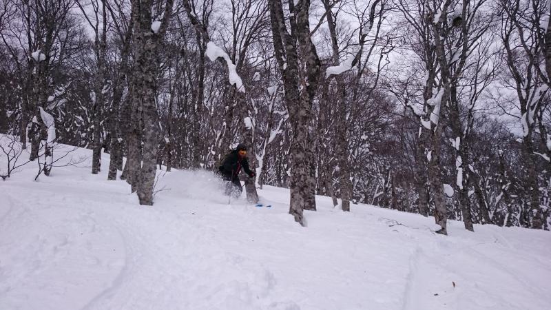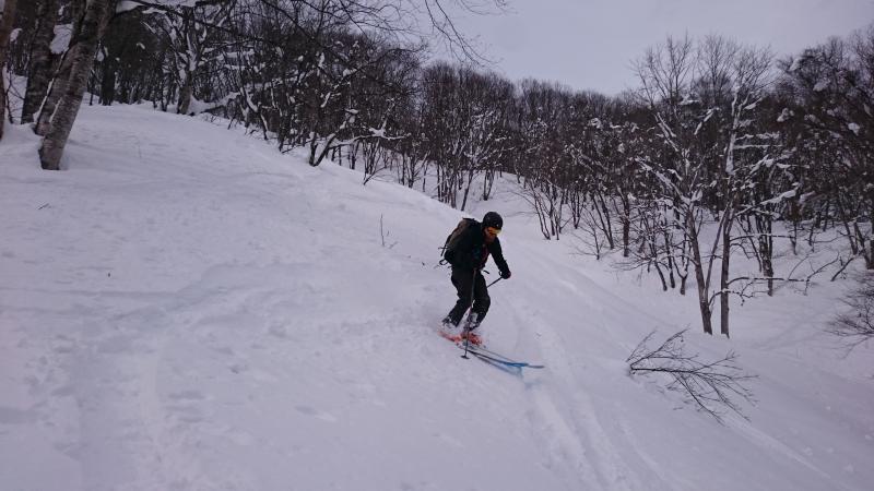 ほんのちょっと登って、長い距離を滑れるので、プチバックカントリーにおすすめの山だと感じました。