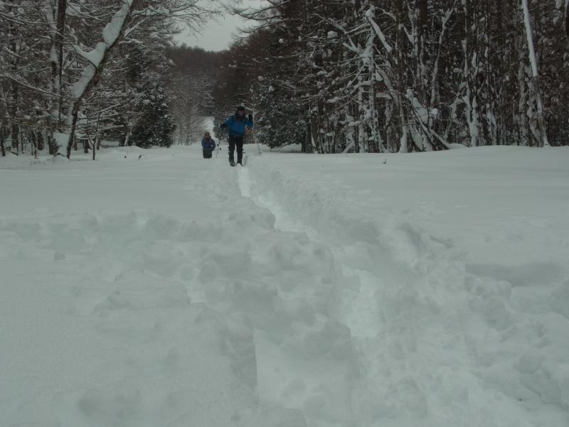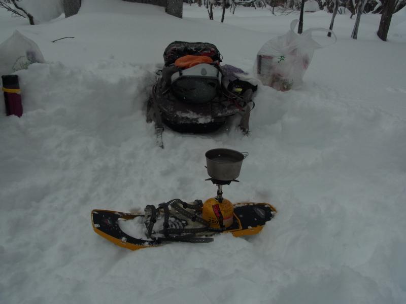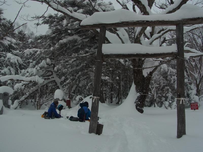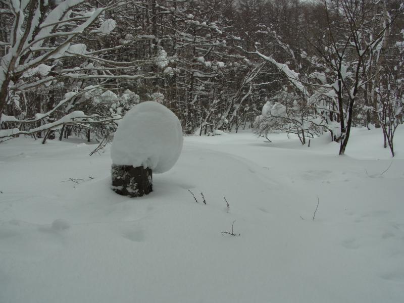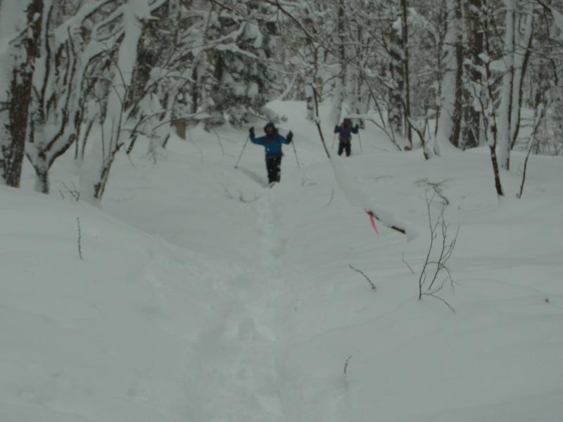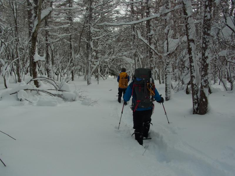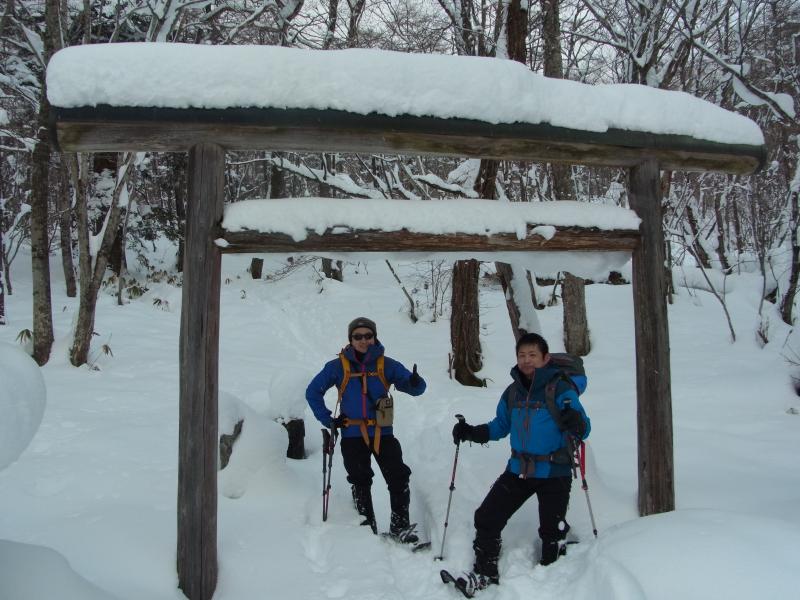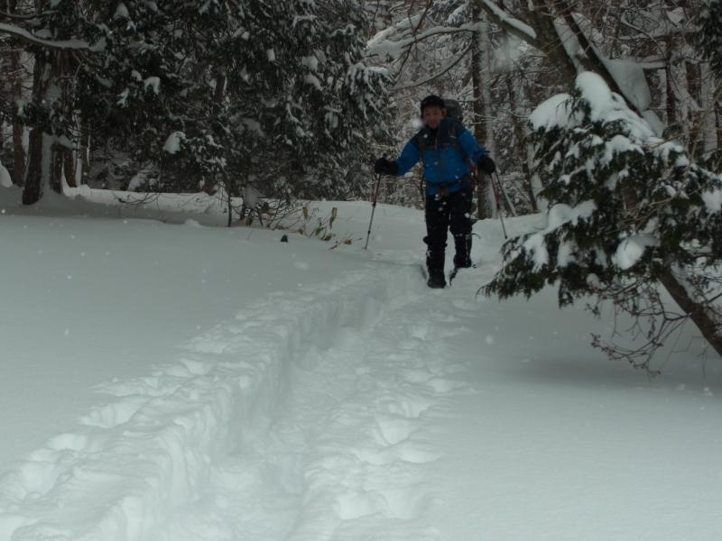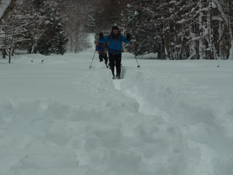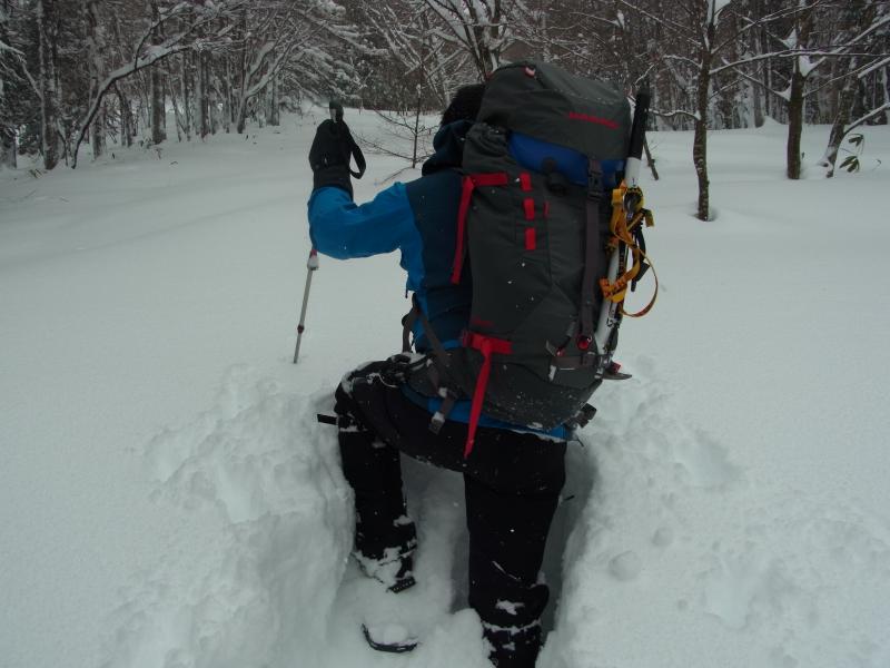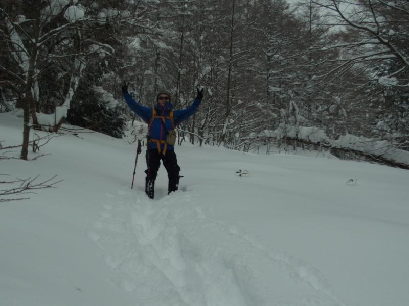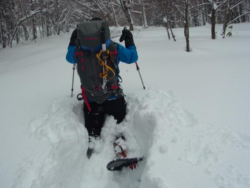 50cm~80cmくらいの新雪に25インチのスノーシューでもずっぽりと嵌まり登り初めとしてはかなり