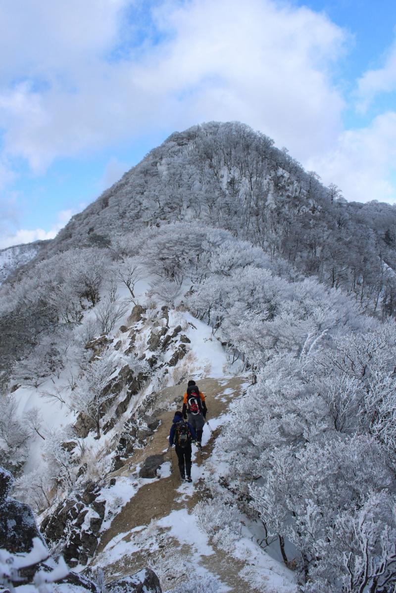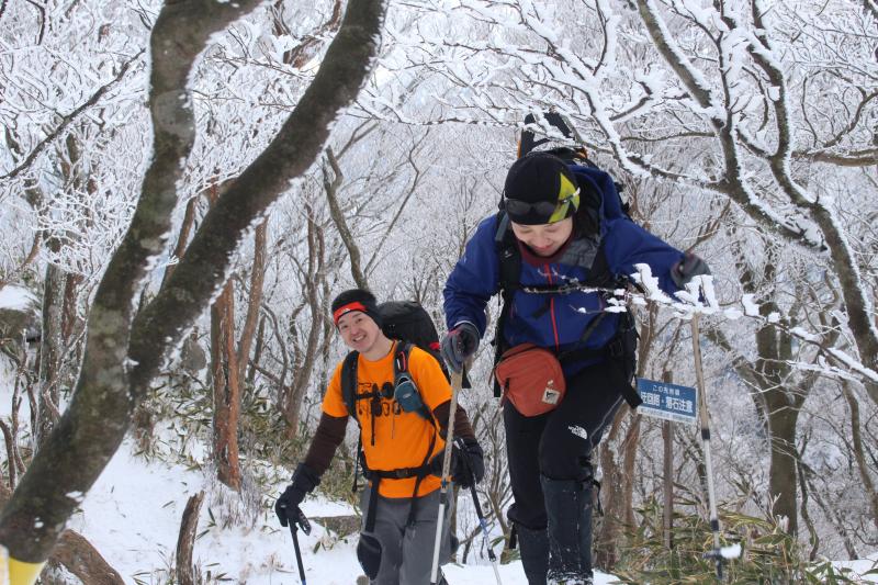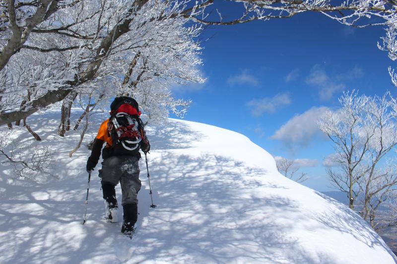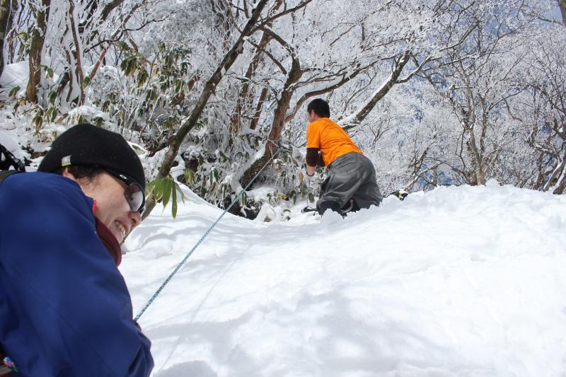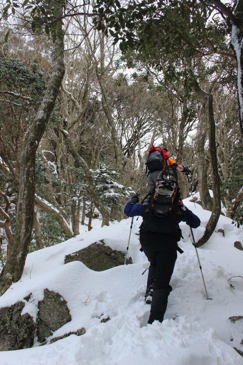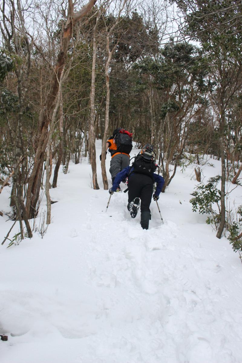 尾根にの積雪は少なめですが、部分的に多い所もあり、ラッセルもありました。
