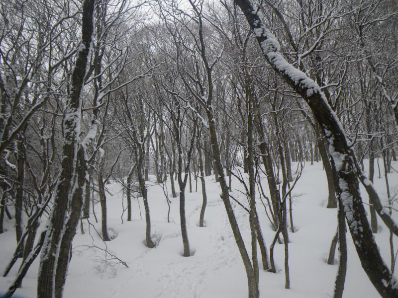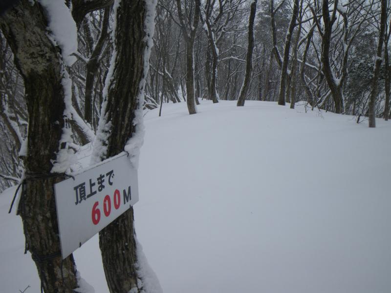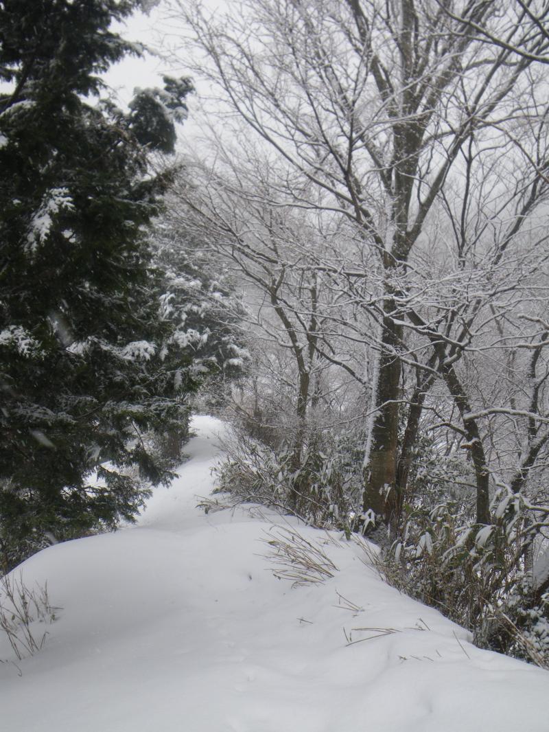 高島トレイルの武奈獄へ行くつもりが、冬型にも関わらず、みぞれ交じりの雪でベタバタになりそうなので予定変更し、帰り道に寄れる余呉トレイルの行市山に変更。低山ですが、ここのところの降雪で充分に積雪がありました。