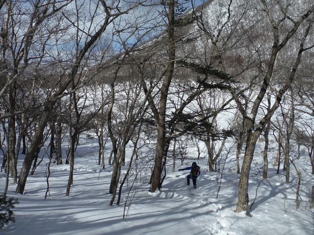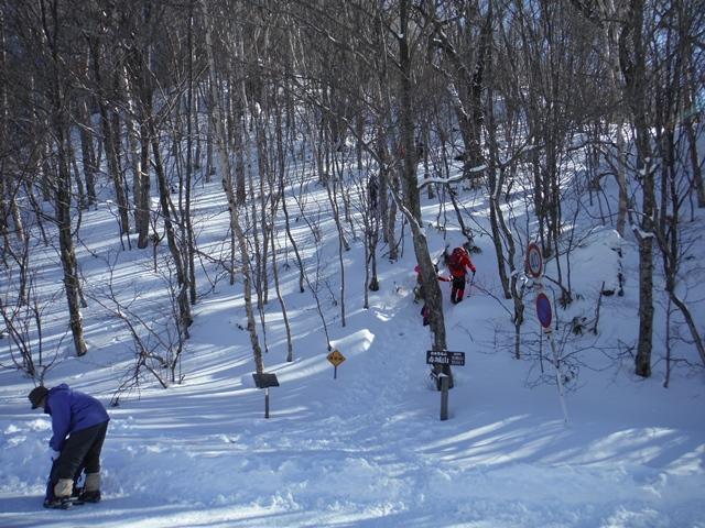 踏み跡がしっかりとついているのですが一部夏道から外れ 急斜面を降ることに