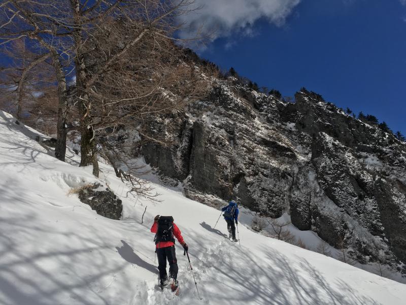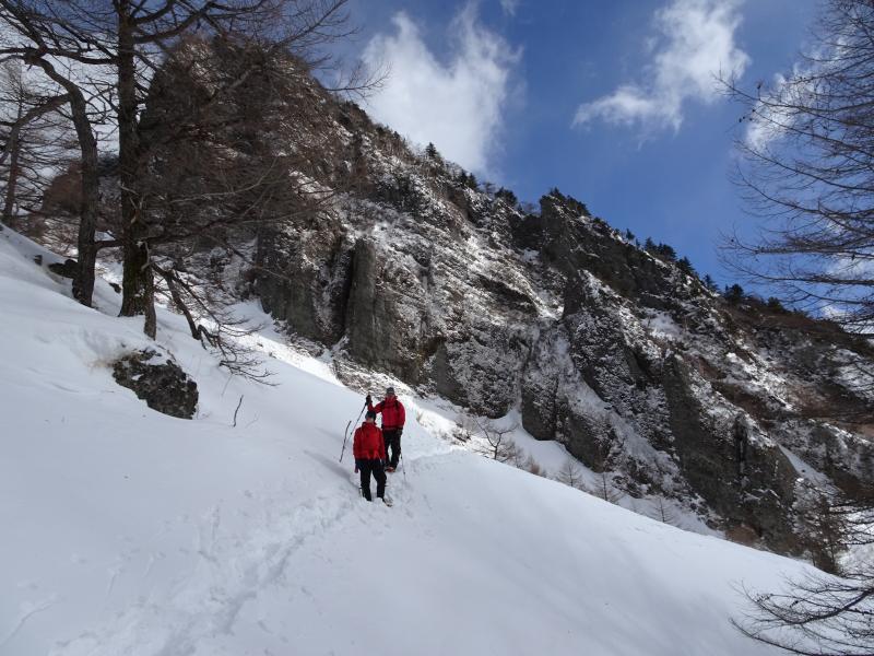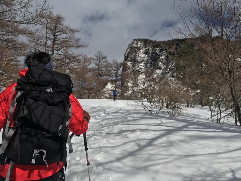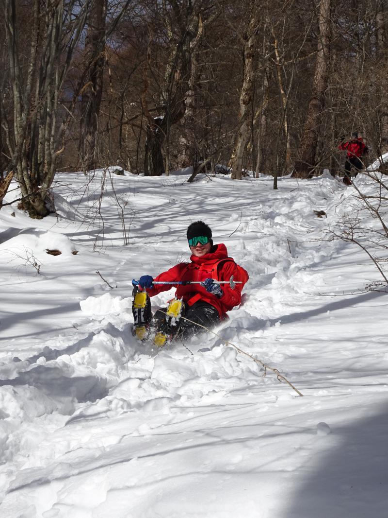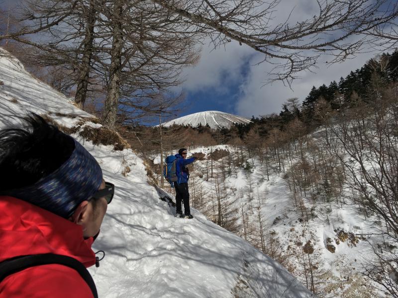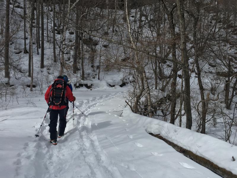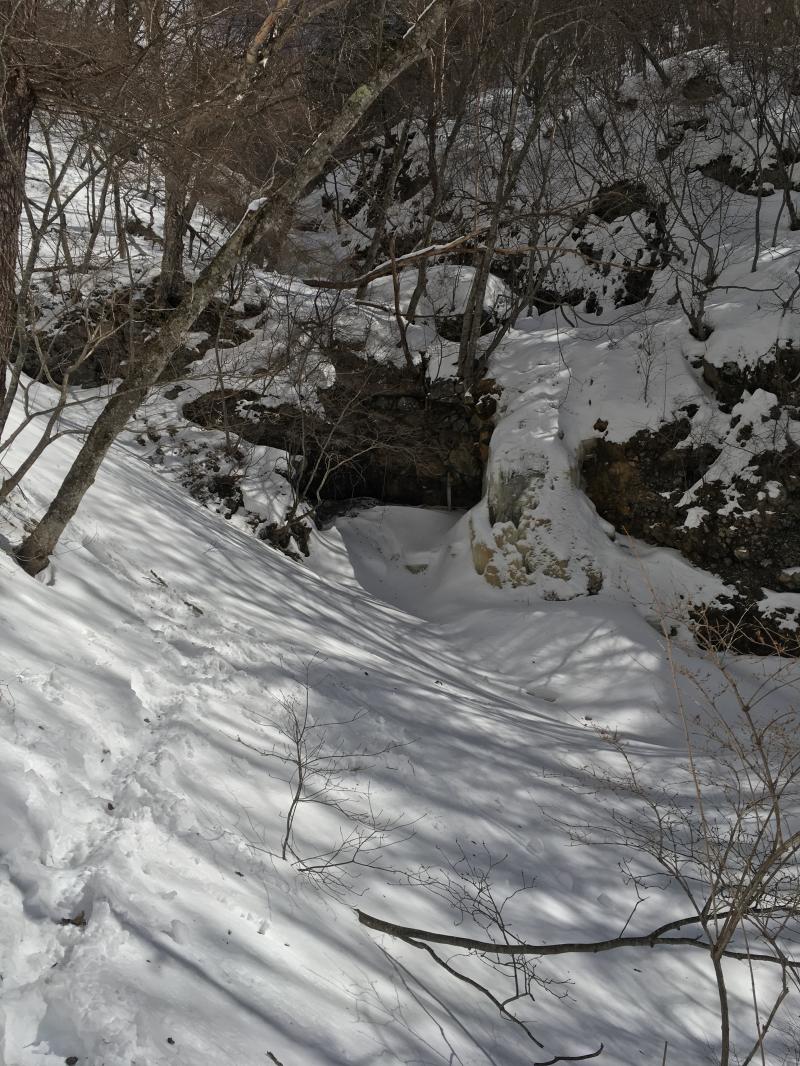 氷瀑した不動の滝を通り過ぎたあたりから積雪がかなり深く...今回アイゼンしか持ってこなかった自分には中々歩くのが大変な状況(笑)。