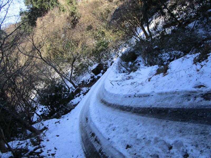 先週、水戸方面で大雪が降ったので期待して行ってみました。毎年筑波山に雪が積もると登りたくなります。今回は短いコースながら、北面に位置し、また交通の便の悪さから人気のない、このコースをご紹介します。