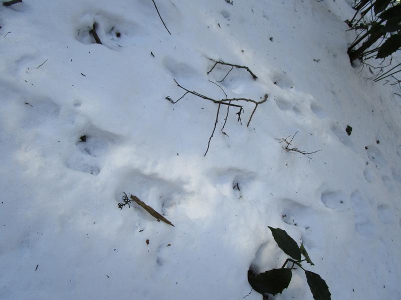 登山道のついては、北面に位置するためか積雪はやや多め。10cm前後です。ゲーターと軽アイゼンがほしいところです。凍結個所もありますし、降雪直後だと道が判然としない箇所があると思います。