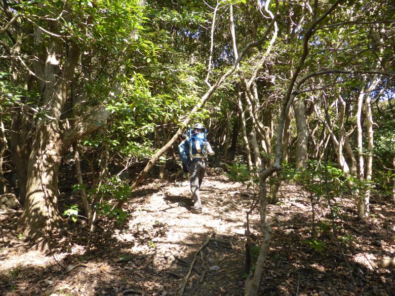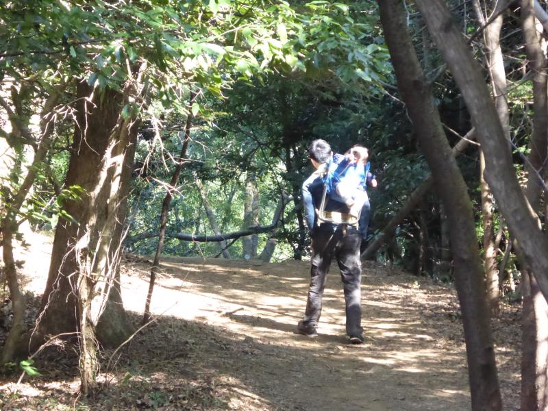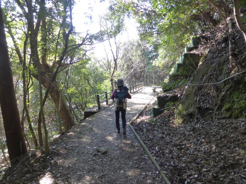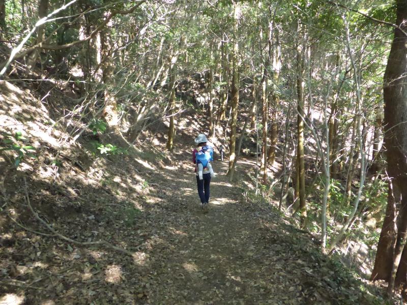 ある程度の傾斜の道が山頂まで続きます。娘は背中に背負っていきました。