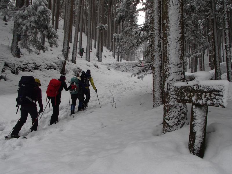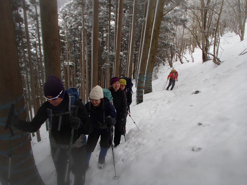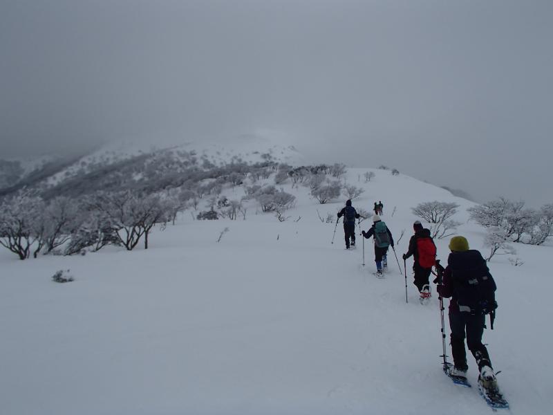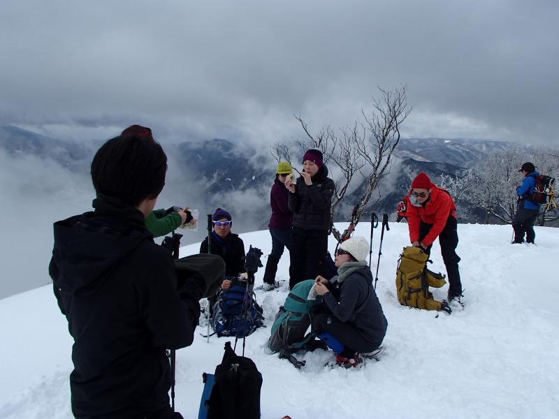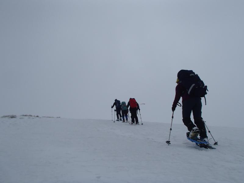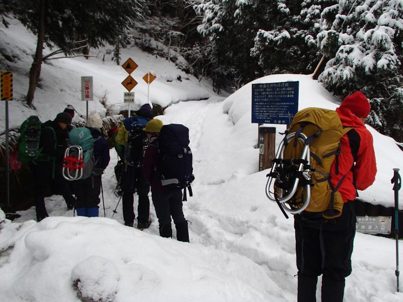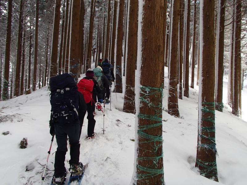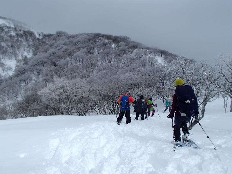 - ・スタートから全コース積雪です。今日は雪が締まっていたのでスノーシューやワカンでなくても登山可能でしたが、基本的にはどちらか必携です。