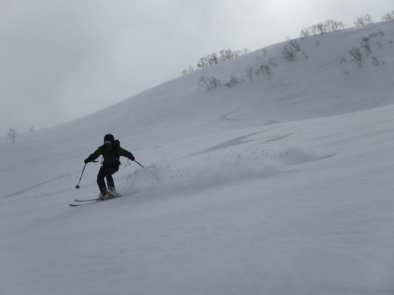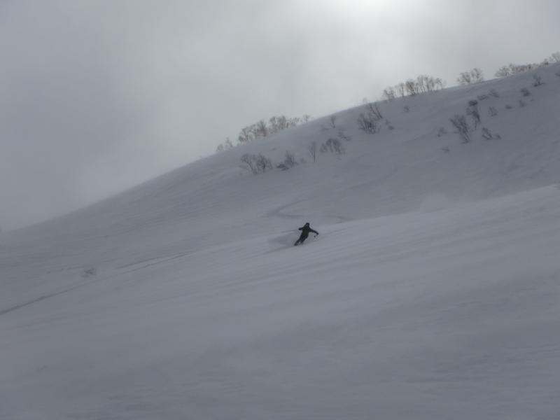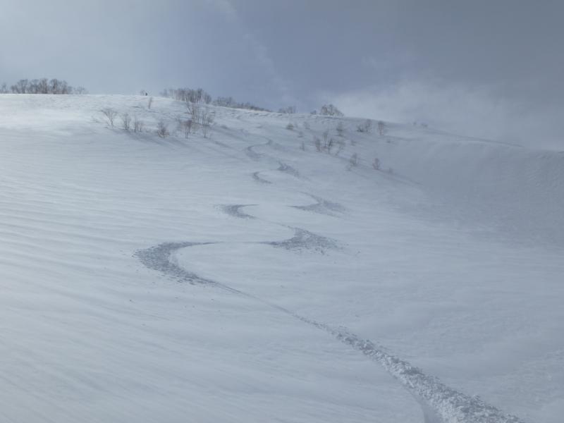 こちらは上部は雪質も比較的ドライに保たれていて、快適そのもの。下に行くにつれてだんだんと重くなりましたが、久しぶりにロングライドを楽しめました。