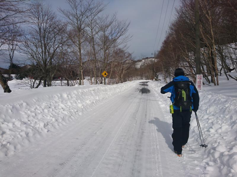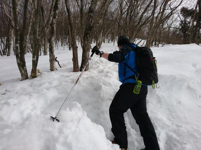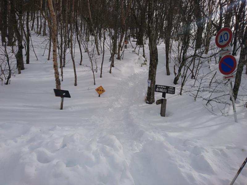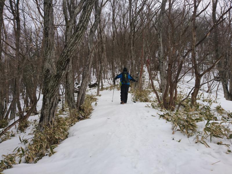 登山道に入るとすぐに雪深くなるのでアイゼンは必須です。