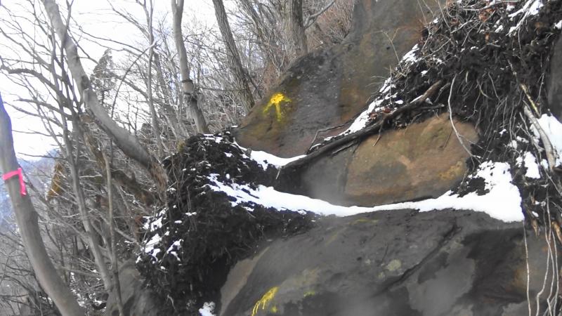 登山道は雪が少し残っていて、ぬかるんだ登山道と相まって大変滑りやすい状態でした。