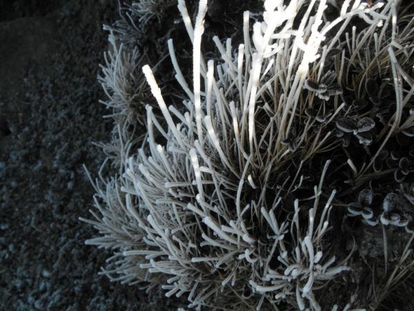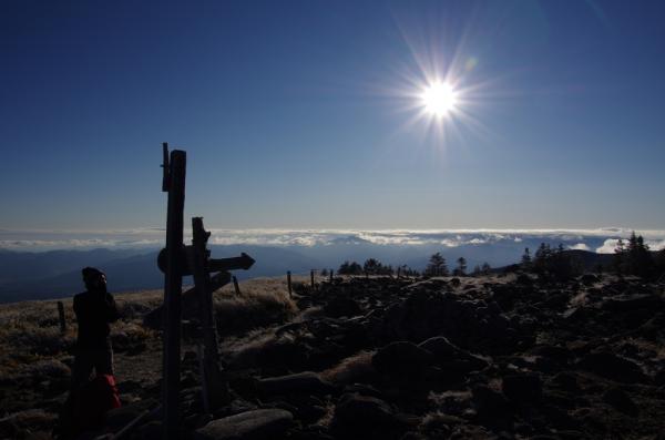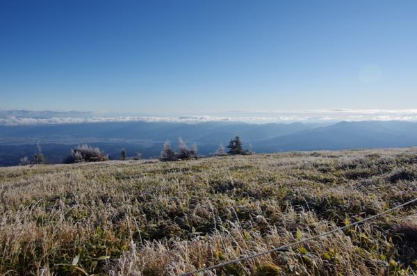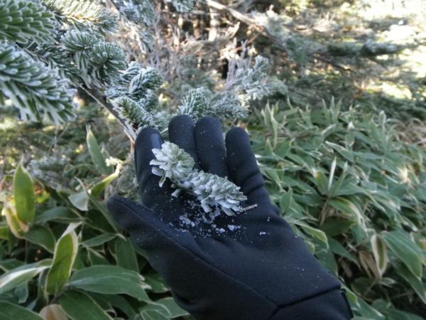 山頂付近の風が強いところは朝方氷結で、ものすごい寒さです。雪はまだ無い状態だったので、安心して歩けました。