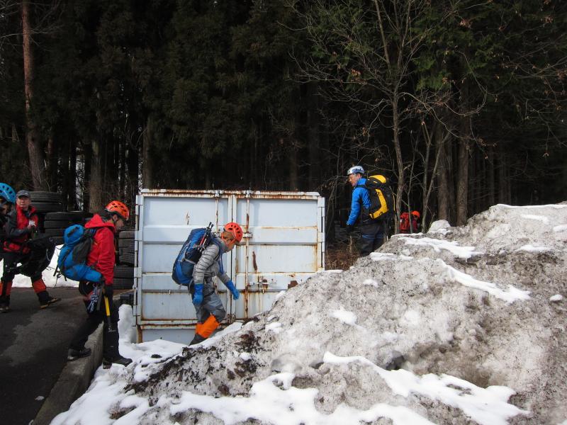 潮原温泉から少し奥に入ったところで出発の準備。気温は比較的暖かい。