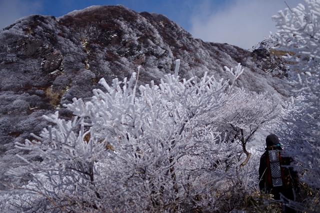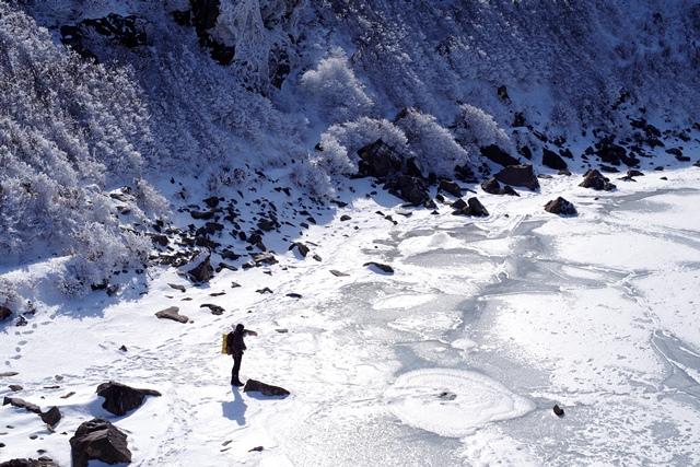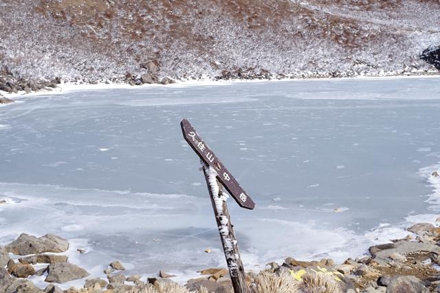 御池はうっすらと氷が全体に張っているものの歩くとミシミシいうところがありました。