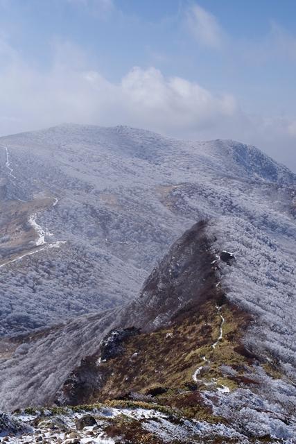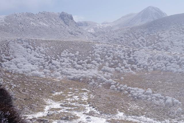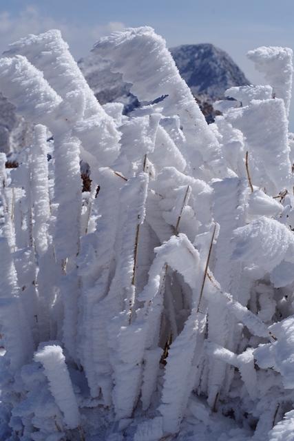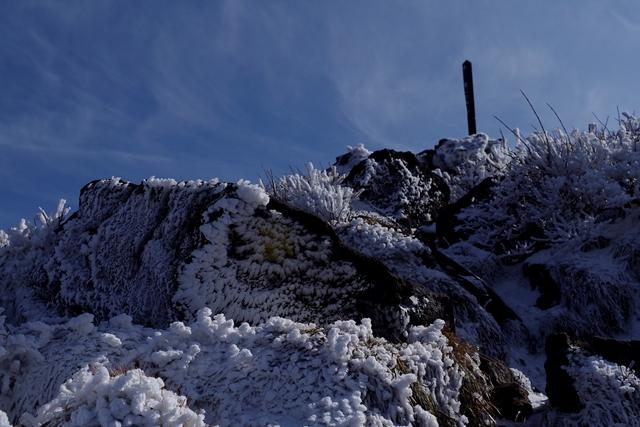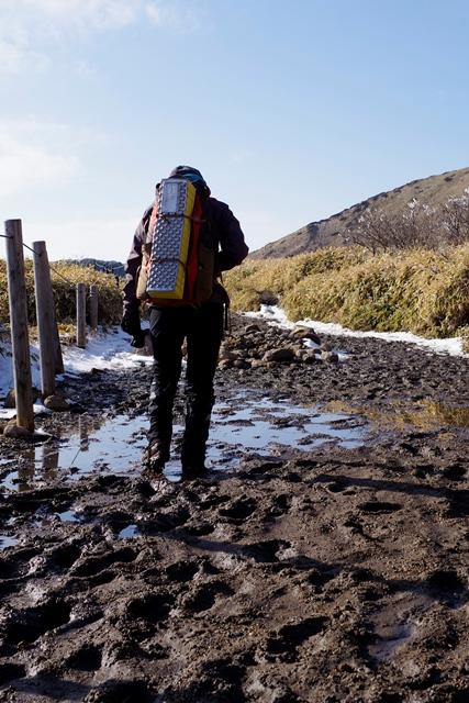 下山時は、天気が良かったので、雪、霧氷は溶け足元はドロドロで、