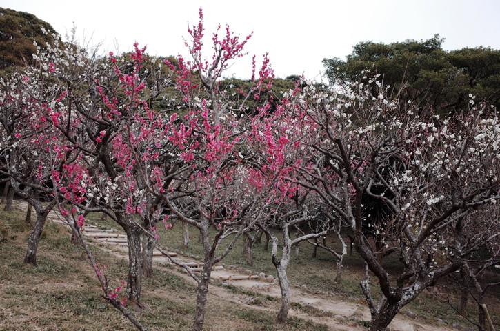 保久良神社の梅林は白とピンクの花が咲き乱れ、時間を忘れ花に見とれました。