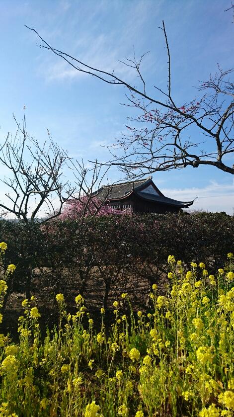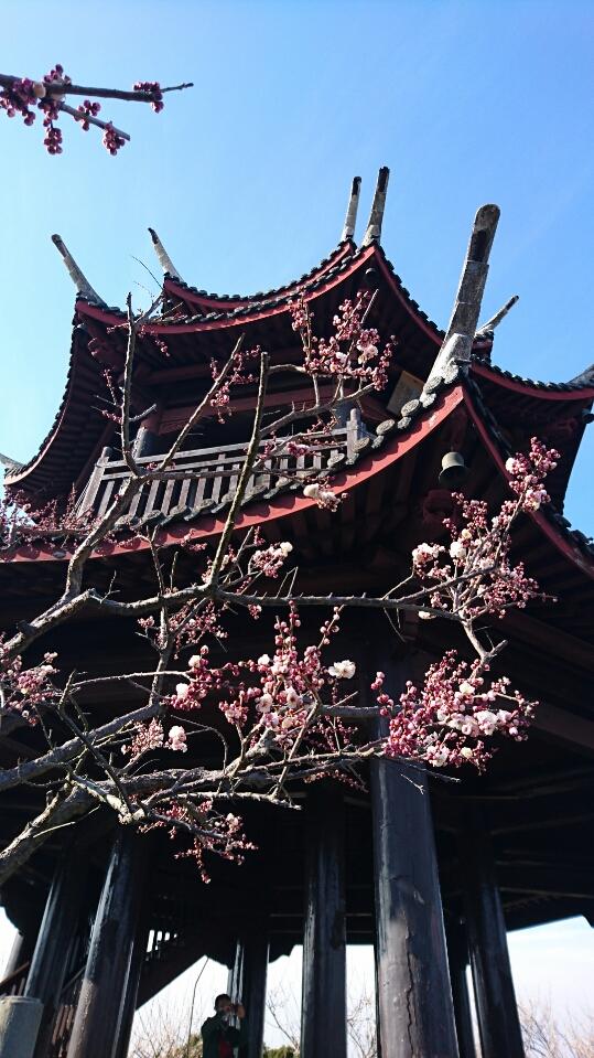 立派な建築物!唐梅閣周辺の梅は見頃です。種類も豊富。