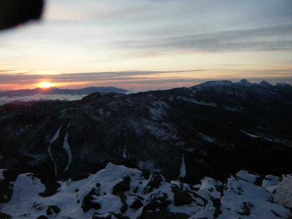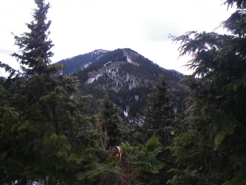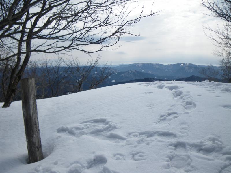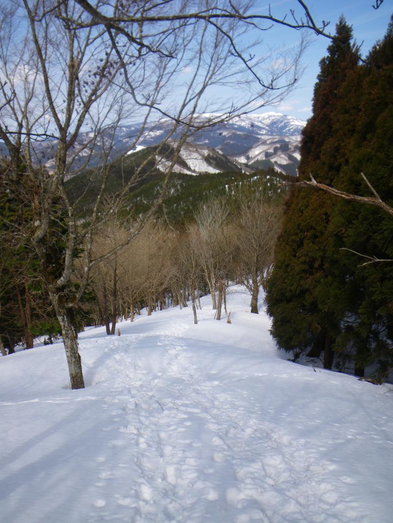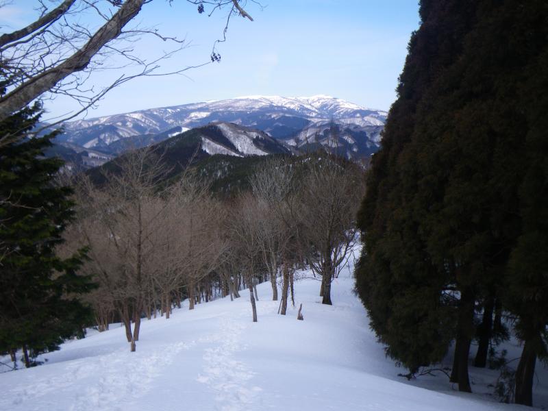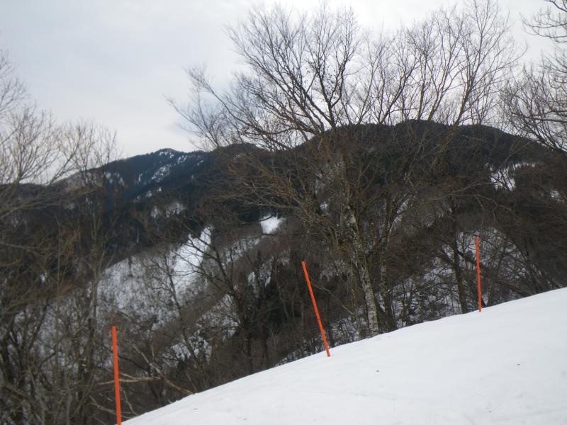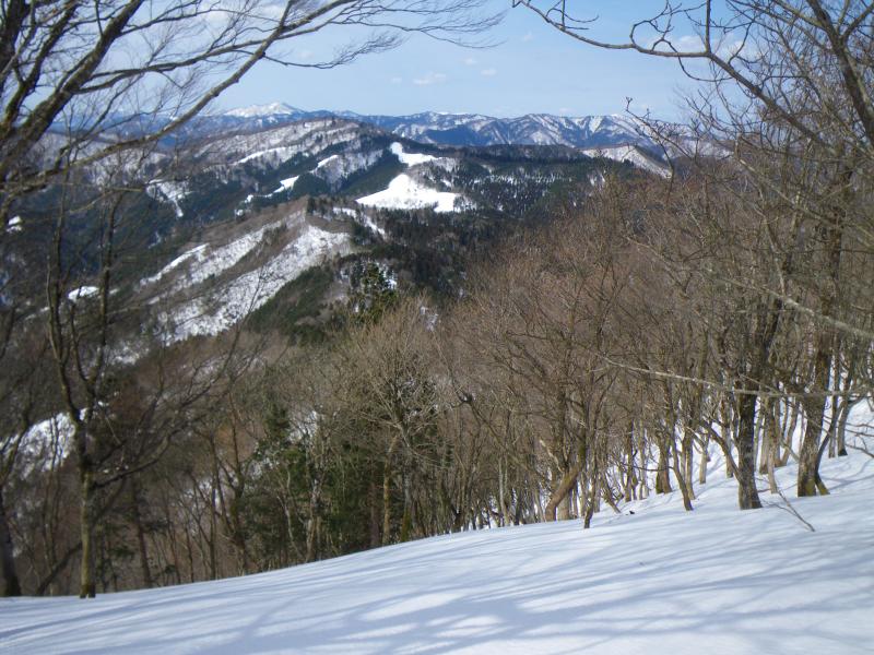 北側に若杉高原スキー場があり、冬季はここから登ると手軽に登れます。北側には氷ノ山や鉢伏山があり、山頂手前のブナ林越しから、はっきり眺められます。