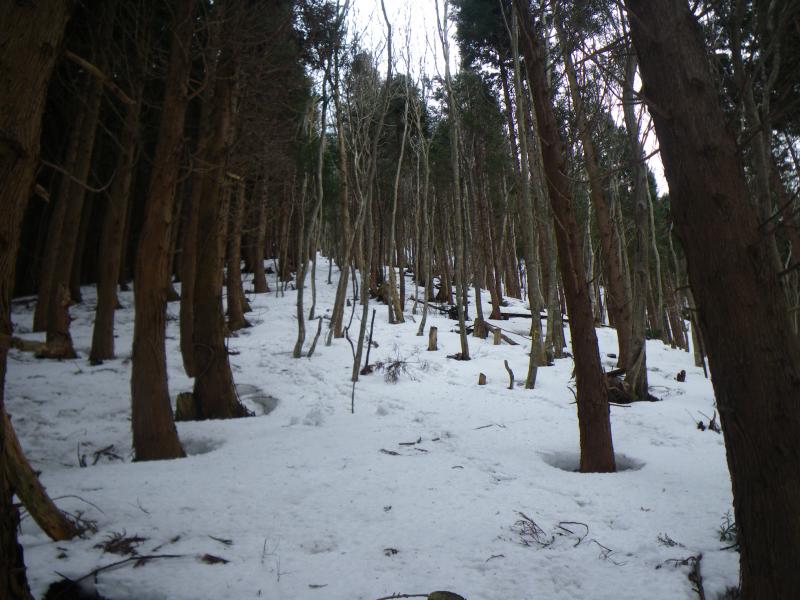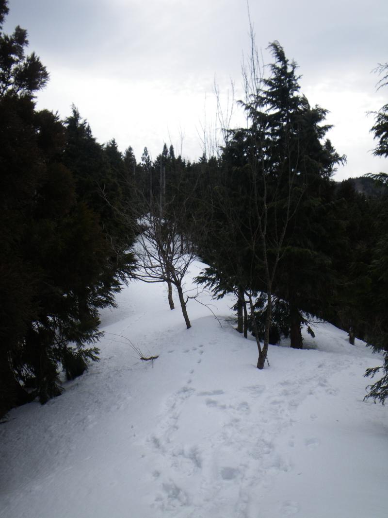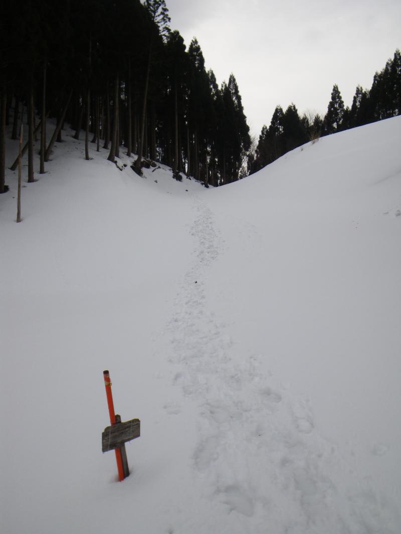 ⑤登山口から最初の登りが急坂で、凍結時はアイゼンが有効