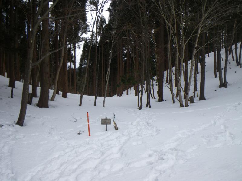 ④若杉峠から続いている尾根の鞍部が登山口で標識があります