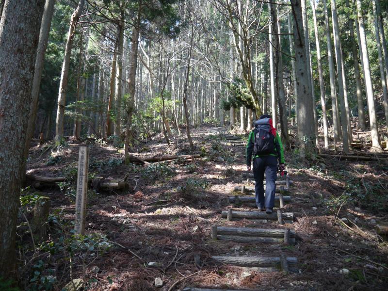 三嶽~大たわ:急な下りで一気に高度を下げてゆきます。大たわには駐車場、トイレがあり、また「フォレストアドベンチャー・丹波ささやま」もあり、ツリークライミングやジップラインを体験できます。