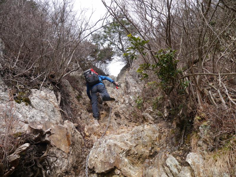 大たわ~小金ケ嶽:はじめは階段、じきに岩場の連続となりなかな楽しいルートです。要所にクサリ場がありますが、あまりクサリを頼らなくてもしっかりした足場とホールドはあります。ただし濡れている場合は要注意。